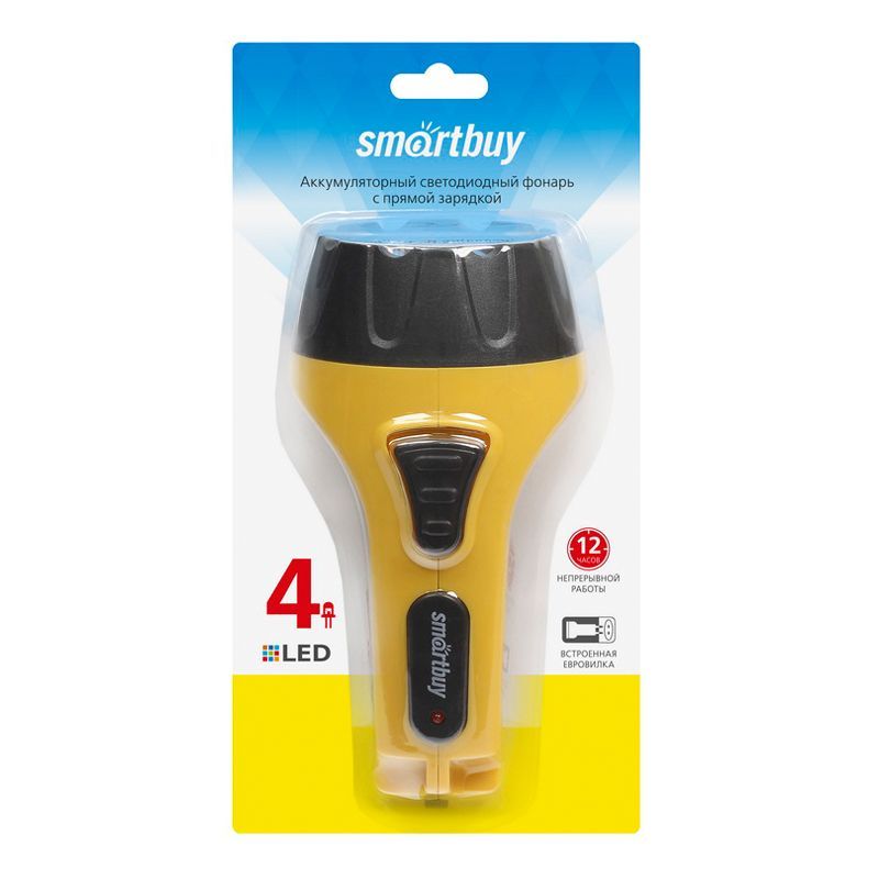 Читать все статьиФонарь светодиодный 4LED с прямой зарядкой, жёлтый Smartbuy