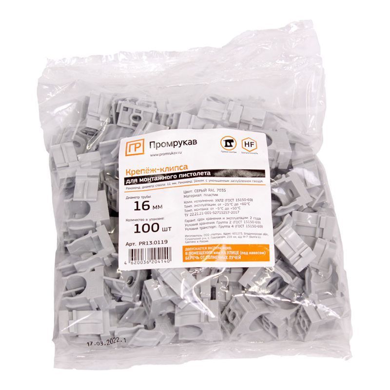 Читать все статьиКрепеж-клипса для монтажного пистолета 16мм серая Промрукав