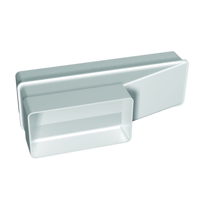 Соединитель эксцентриковый плоского воздуховода Era предназначен для соединения пластикового канала сечением 55х110 мм с воздуховодом 60х204 мм. Соединение осуществляется в горизонтальной плоскости, воздуховоды с переходом соединяются напрямую.