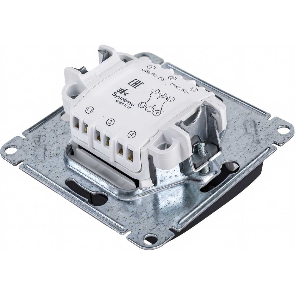 Механизм Glossa (цвет антрацит) переключателя 2-клавишного подходит для сетей 250 В, на ток 10 А. - Переключатель позволяют управлять одним источником света с двух точек. - Выполнен из материала PС+ASA, стойкого к УФ-излучению и появлению царапин. - Эргономичные клеммы расположены в два ряда: сверху и снизу.