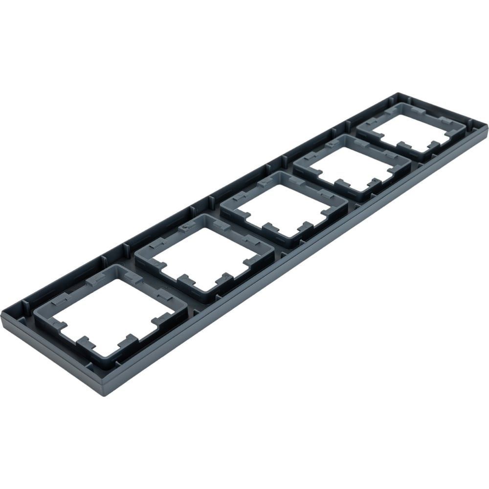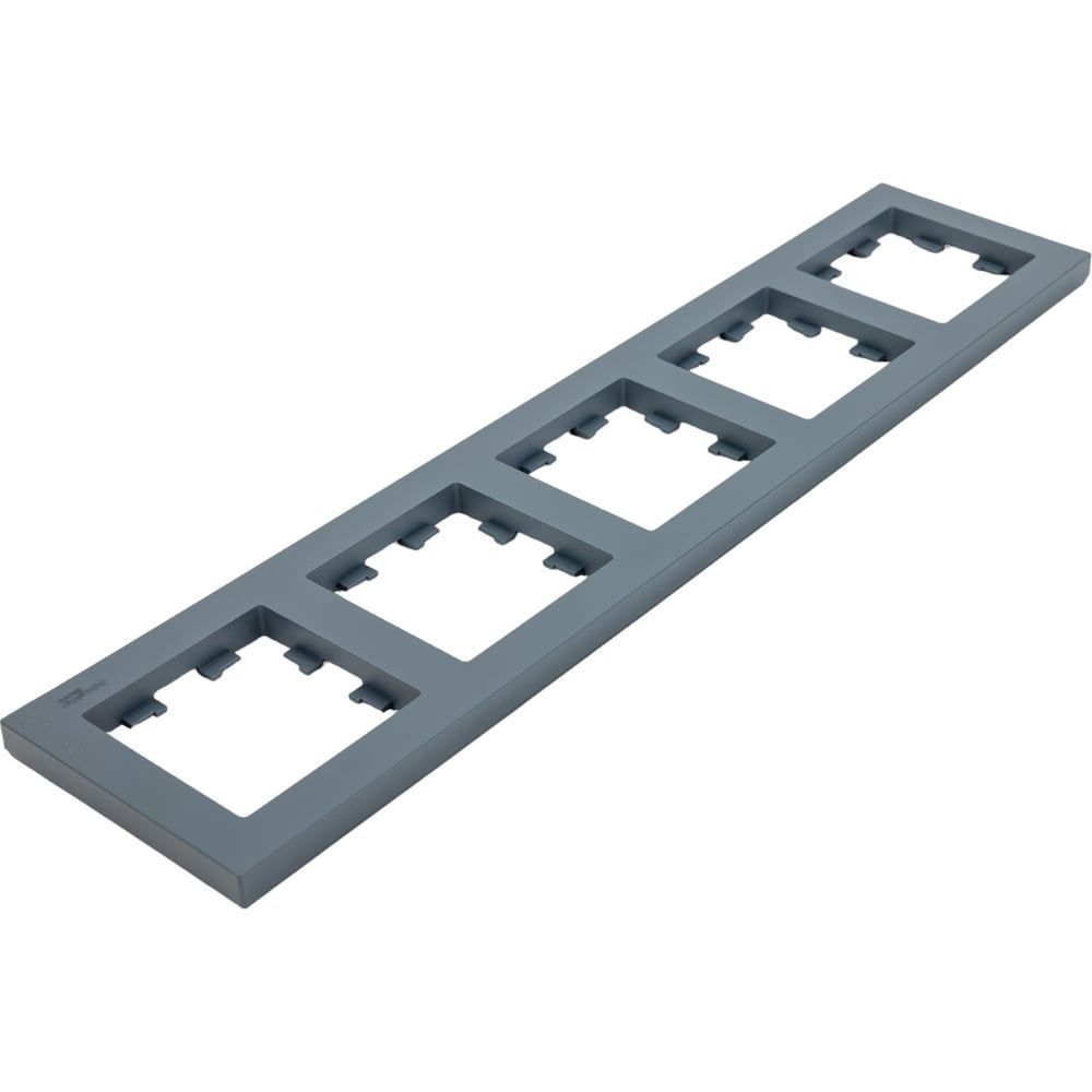 Рамка AtlasDesign (цвет грифель) пятиместная. - Устанавливается в вертикальном и горизонтальном положениях. - Лицевые детали из качественного ABS-пластика, устойчивого к царапинам и УФ-излучению. - Позволяет гармонично вписать электроустановочное изделие в интерьер помещения.