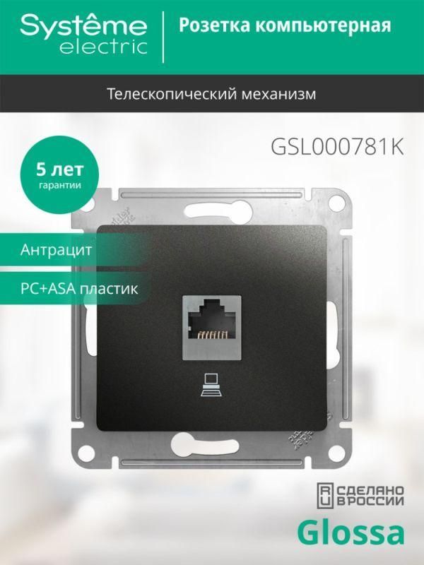 Читать все статьиРозетка компьютерная антрацит 1xRJ45 Glossa Schneider