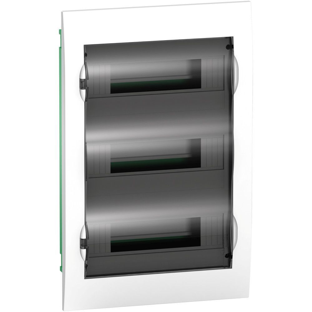 Распределительный щиток серии Easy9 Box предназначен для установки аппаратов защиты и управления бытовой электроустановки. Щиток встраивается в стену, имеет 3 DIN-рейки для установки 36 аппаратов по 18 мм. Прозрачная дверь щитка может быть установлена с правой или левой стороны.